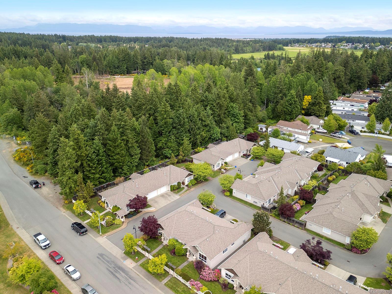 Aspen Wynde, a charming community of one-level patio homes in Comox. Conveniently located near the bus route, a short stroll to Quality Foods and Land and Sea Brew Pub! This lovely unit, 2 BD/ 2 BA, 1,093 sf offers expansive mountain views and fantastic sunsets. Built in 2007, a spacious open plan living/dining room with 9' ceilings, crown moulding and large windows to capture the Southwest sun exposure. A generous sized master bedroom with walk-in closet and 4 pce bath, and a guest room that could be a home office or craft room. The morning sun brightens the kitchen with maple shaker cabinets, working island with seating and adjacent family room offers sliding door access to the private patio, gardens, and a small storage room for golf clubs, bikes, etc. Single car garage and a full driveway for additional parking at the back of the unit, energy efficient gas forced air furnace and gas H/W tank, Phantom screen door. There are no age restrictions, 1 dog < 20 lbs/< 13" or 1 cat.